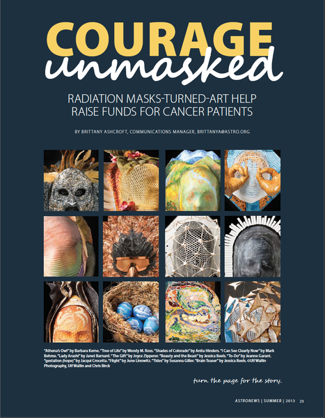 ASTRO • 09/28/2025 Courage Unmasked Feature in ASTROnews Summer 2013 A feature on a nonprofit helping people with cancer by turning radiation masks into art
